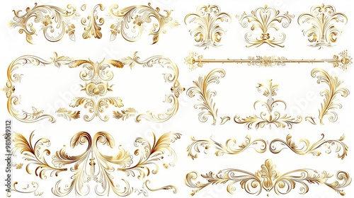 Elegant Vintage Gold Decorative Elements: Exquisite Frames, Swirls, and Borders for Timeless Design