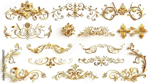 Elegant Vintage Gold Decorative Elements: Exquisite Frames, Swirls, and Borders for Timeless Design