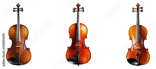 Elegant Violin Trio Displayed on Black Background for Music Lovers Isolated Transparent Background