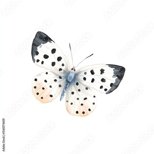 Elegant Watercolor Butterfly, Delicate Wings, Peach and Gray Hues, Spot Pattern, Artistic Flair, Nature Inspired.