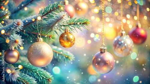 Elegant watercolor Christmas tree ornaments background in soft golds and whites