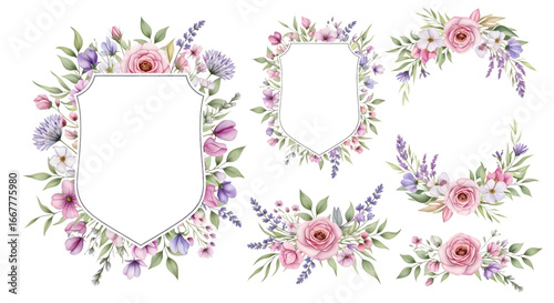 Elegant Watercolor Floral Frames and Borders for Wedding Invitations, Greeting Cards, and Botanical Design Projects, Suitable for Creative and Commercial Use
