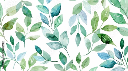 Elegant Watercolor Floral Seamless Pattern with Leaves Print