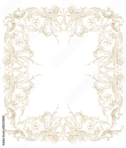 Elegant Watercolor Frames, Baroque Victorian Borders, Hand-Painted Ornamental Beige Designs