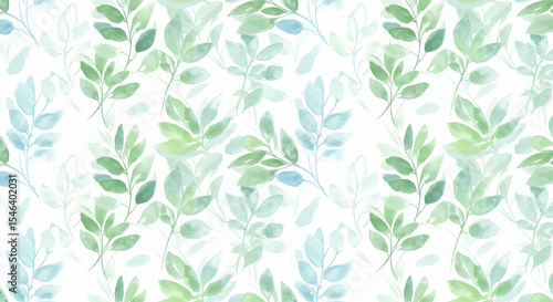 Elegant watercolor leaves pattern with soft green hues on a white background
