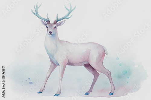 Elegant watercolor painting of a majestic deer with large antlers in soft pastel hues