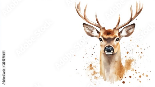 Elegant Watercolor Portrait of a Majestic Stag with Antlers