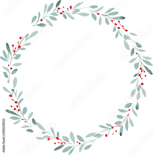 Elegant Watercolor Wreath Festive Greenery, Winter Berries, Holiday Design