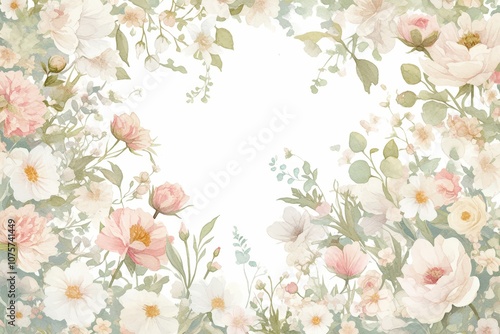 Elegant watercolor-style floral frame featuring coral peonies and soft mint eucalyptus leaves, with gentle brushstrokes for a delicate and refined look..