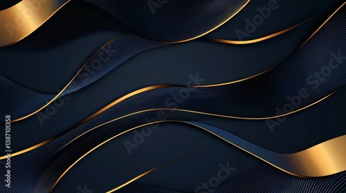 Elegant wavy patterns in dark blue and gold create a stunning backdrop for design projects or presentations