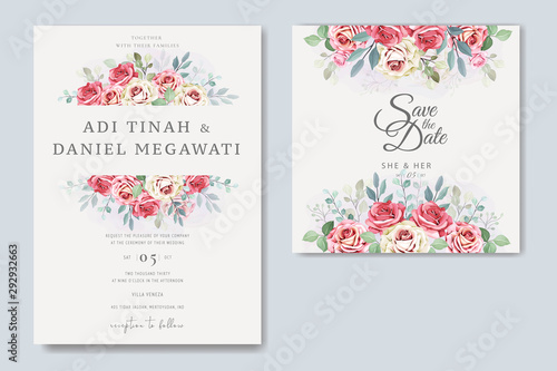elegant wedding card with beautiful floral and leaves template