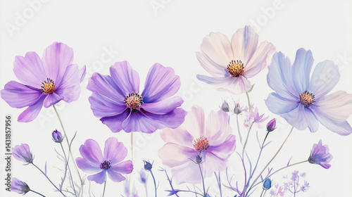 Elegant wedding invitation card background . Minimal hand painted watercolor Cosmos flowers texture template background. Design for wedding, vip cover, poster, rsvp moderncard.Valentine's Day