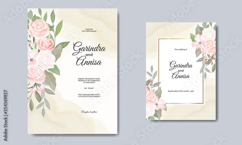 Elegant wedding invitations card template with colouful floral and leaves Premium Vector