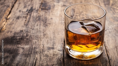 Elegant Whiskey Glass on Rustic Wooden Table Capturing a Cozy Ambiance : Generative AI