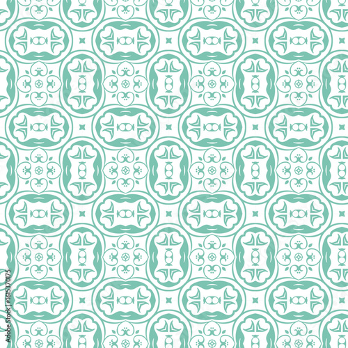 Elegant White and Teal Ornament Pattern Seamless Ornamental Design for Backgrounds, Textiles, and Creative Projects