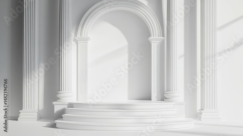 Elegant white architectural interior with columns and steps art room wall clean space light style