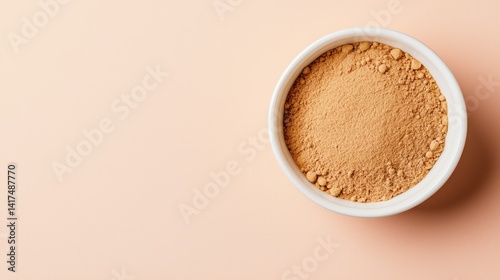 Elegant White Ceramic Bowl with Ashwagandha Powder on Beige Background