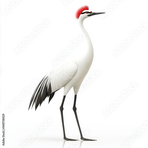 Elegant White Crane with Red Crest, Detailed Illustration