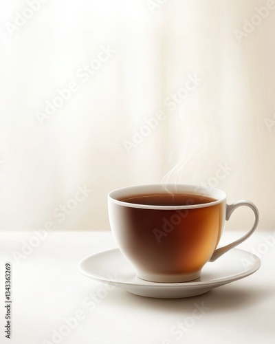Elegant White Cup of Hot Tea with Steam on Table Against Soft Background Light