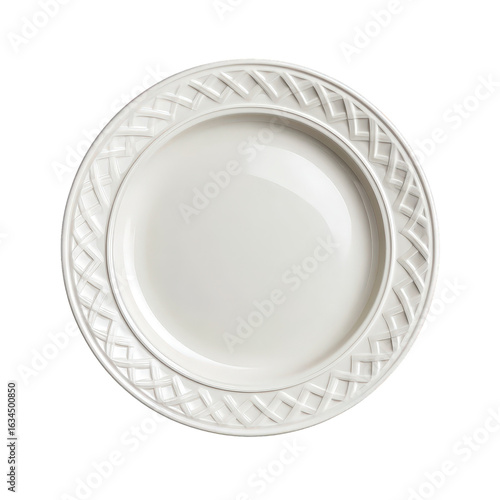 Elegant White Decorative Plate with Intricate Border Design for Serving or Display