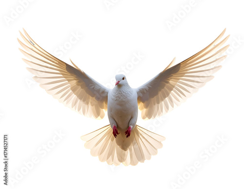 Elegant White Dove Soaring with Golden Sunlight Glow