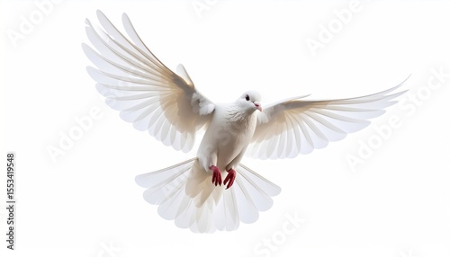 Elegant white dove soaring with outstretched wings against a transparent backdrop