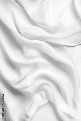 Elegant white fabric with flowing, smooth curves. The textile drapes gracefully, creating a soft and airy effect. Pure and simple texture of silk.