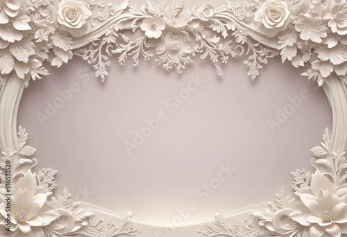 Elegant white floral frame with intricate design and rose decorations, perfect for wedding invitations, cards, or sophisticated announcements.