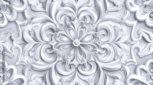 Elegant White Floral Ornament with Intricate Detailing for Backgrounds