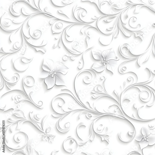 Elegant white floral pattern with intricate details and embossed effects, perfect for backgrounds and designs.