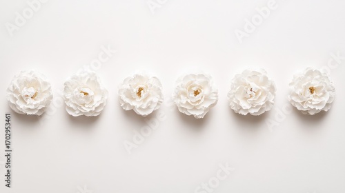 Elegant white flowers in a row on a white background.