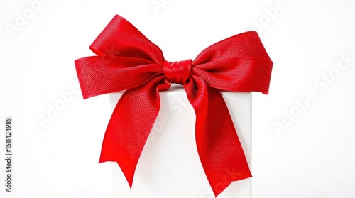 Elegant White Gift Box with a Vibrant Red Bow: A Festive Minimalist Image