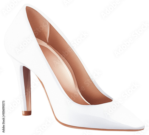 Elegant white high heel shoe isolated on transparent background.