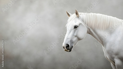 Elegant White Horse Portrait Against Hazy Grey Background