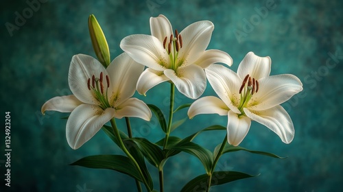 Elegant White Lilies Against Teal Background (1)