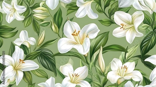 Elegant White Lilies Bloom Lushly in a Detailed Botanical Illustration. AI Generated