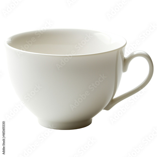 Elegant White Porcelain Cup: Minimalist Design With Smooth Curves And Delicate Handle On A Clean White Background