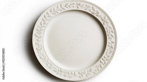 Elegant White Porcelain Plate with Delicate Floral Design,Isolated on White Background