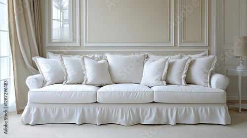 Elegant white sofa adorned with pillows in a classically styled room