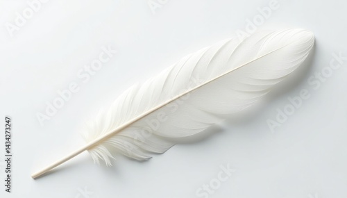 Elegant white swan feather against pure white backdrop, closeup, object