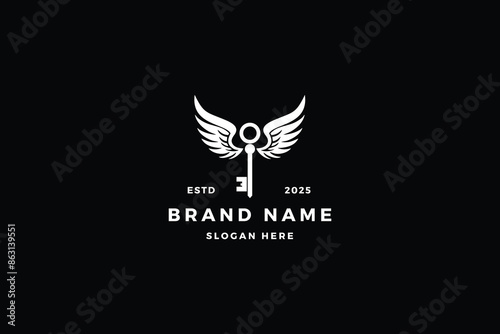 Elegant Winged Key Logo Design Vector for Modern Brand Identity and Slogan