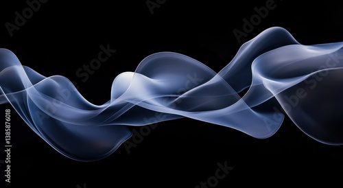 Elegant wisps of light blue smoke gracefully float against black backdrop