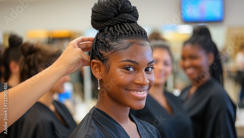 Elegant Woman Getting Hair Styled at Professional Salon