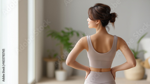 Elegant Woman in Athleisure Wear Standing in Bright Modern Home for Fitness or Lifestyle Concept