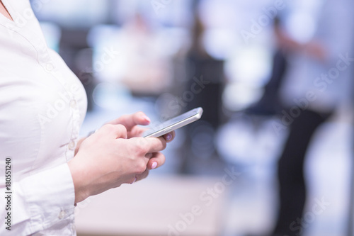Elegant Woman Using Mobile Phone in startup office building
