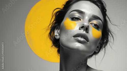 Elegant Woman with Mustard Yellow and Periwinkle Paintbrush Strokes