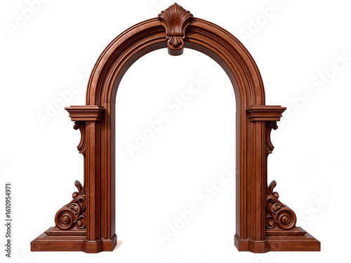 Elegant wooden arch frame with smooth surface, suitable for classic architecture designs. Generative AI