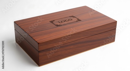 Elegant wooden box with logo isolated on white background, a timeless gift