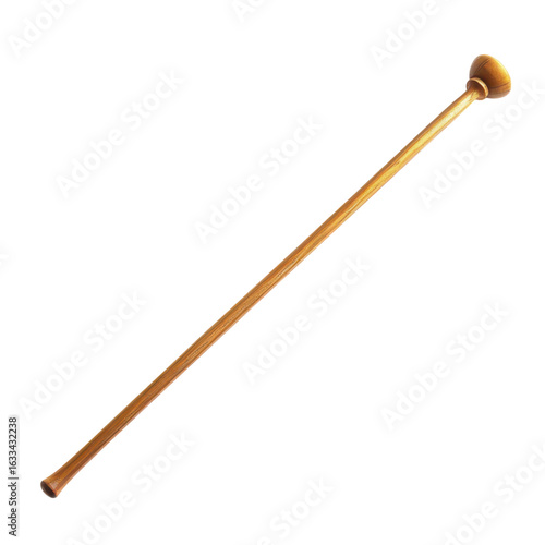 Elegant Wooden Cane with Smooth Finish on White Background