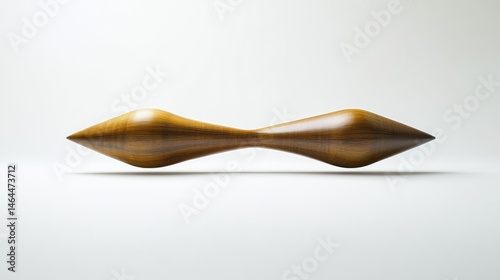 Elegant wooden sculpture with a smooth finish, balanced on a white background, showcasing craftsmanship